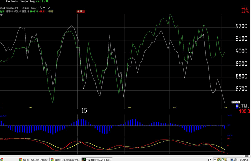 Dow Theory Comparison Chart: Dow Industrials and Dow Transports.