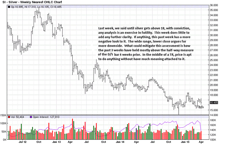 There is little going on in the precious metals markets that indicates directional movement to the upside, and not even much to the downside. The news is as disjointed but permeated with sameness as ever before. To try to make sense of nonsense remains in the theater of the absurd. All we have to offer are the current read of charts, and they are an extension of what they have been like for the last several weeks.
