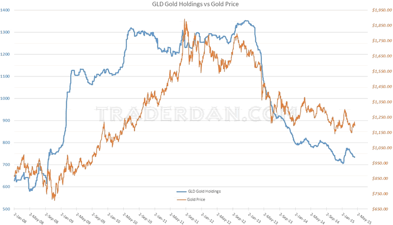The first is the chart we regular feature here, namely, that of the reported gold holdings out of the largest gold ETF, GLD.