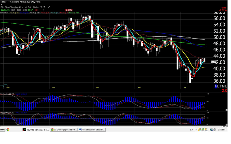 Chart: % of stocks above their 200 PMA: Daily.
