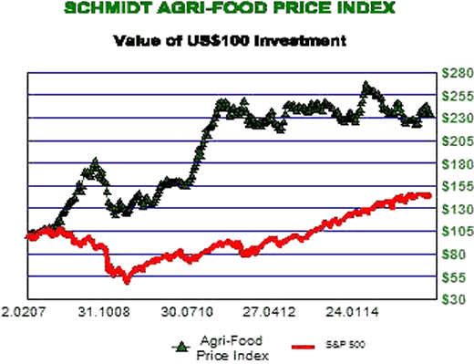 Last we visited on Agri-Foods the concept of Peak Food was introduced. That shift in the fundamentals of global food production was identified as adding support to Agri-Commodity prices. For despite the negative sentiment on commodities and "China is collapsing" group think, Agri- Commodity prices continue to show strong resilience, as shown in the chart below right. As prices of Agri-Commodities do not move in unison, the Agri-Food Price Index has been essentially unchanged for about three years. For example, recently hog prices have been weak while U.S. cash corn hit a new 52-week high.