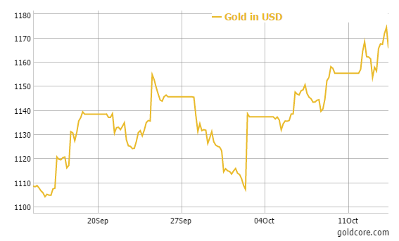 Market analysts agree that a threshold is looming “in the form of the recent high in August and the 200-day rolling average gold price”. However, some are more optimistic than others. Mining.com point to analysts at Denmark’s Saxo Bank who “sense a change of sentiment is unfolding”, with a rise above the $1,170 August high confirming that “a floor has been established”.