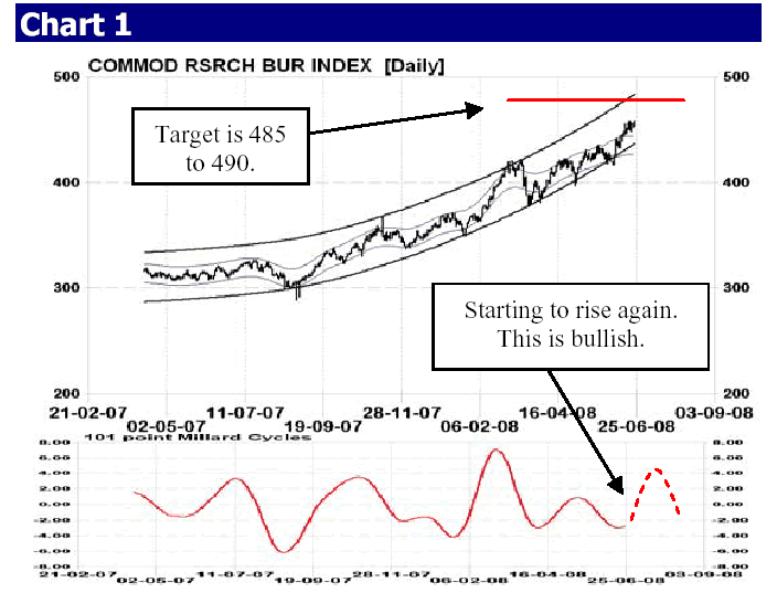 The upward movement of the CRB Index (see Chart 1) since December 2007 has been a series of sharp upward advances, with very minimal short-term profiting-taking or corrections.