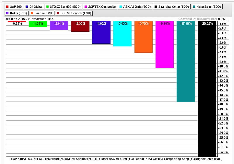 Chart 2 shows the performance of the major world indexes from June 9th to November 11th.