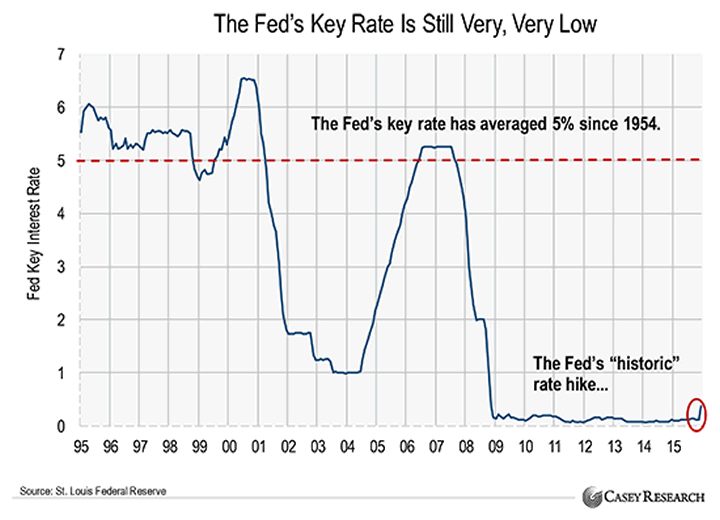 The average interest rate on a savings account is a tiny 0.5 percent right now, according to Bankrate. Even after the rate hike, interest on deposits will remain near zero and are negative when inflation is taken into account. Thus, savers are losing money keeping their cash on deposit and today they are also at risk of having their savings expropriated due to the real risk of bail-ins in most G20 nations.