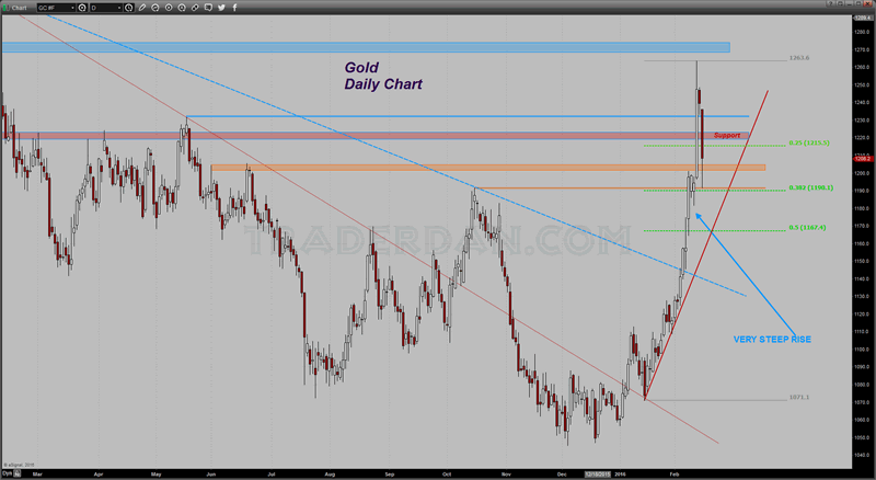 From a fundamental standpoint, nothing has changed in regards to the concerns about negative interest rates nor the chaotic nature of the forex markets. While today’s move in gold certainly was certainly unsettling, it should be kept in mind that this market has rallied nearly straight up since January 14 putting on almost $190 in a month. That is one impressive rally!