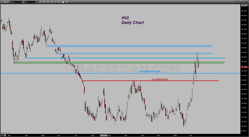 A brief look at the HUI.. not much here either. Just a move lower after the torrid gains of the last month.