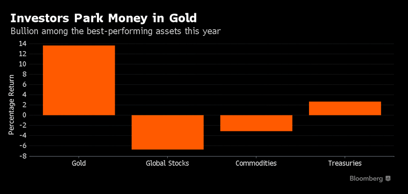 It’s a big turnaround for the metal which slid to a five-year low in December as the Federal Reserve readied for its first rate increase in almost a decade. With China’s slowdown roiling markets, there’s less chance the Fed will move again until next year. Negative rates mean depositing cash would leave investors with less than when they started, making traditional stores of value such as gold more appealing.