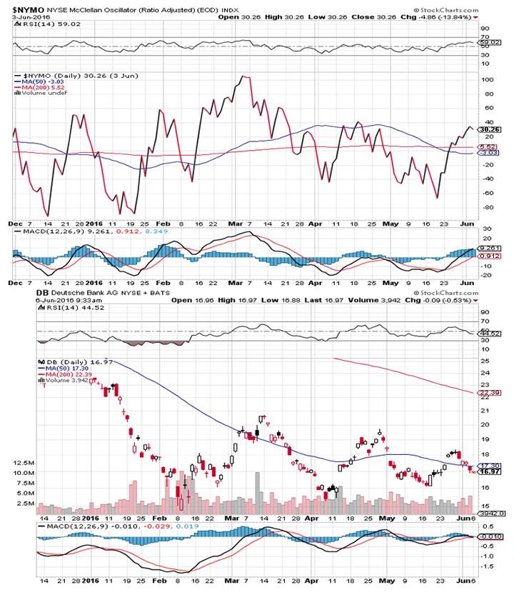 In 17 days time, on the 23rd. of June, Britain goes to the polls to decide whether to stay in the European Union or not. Should Great Britain opt to leave it will send financial and political shock waves around the world. Many believe a win for the leave faction would put Europe’s stressed banking system under such pressure that a “Lehman Brothers type event” could occur, the main candidate being Deutsche Bank with its 75 trillion derivative exposure. Thus June 2016 could turn out to be one of the most volatile trading months in financial history.