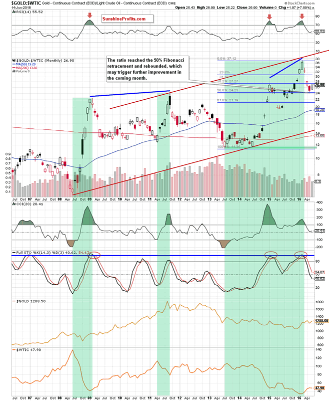 Having said the above, let's take a closer look at the gold-to-oil ratio and look for more clues about future moves.