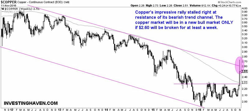 At this point, copper is flirting with a new bull market. If, and that’s a big IF, the $2.60 level can be cleared, we are convinced that a new bull market has started, and our copper price forecast will have a very bullish tune for 2017.