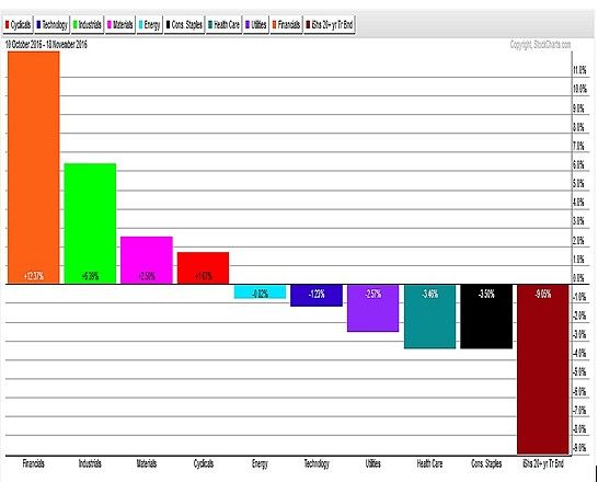 Financial and industrial sectors are the big winners posting an average of almost 10 percent since early November.