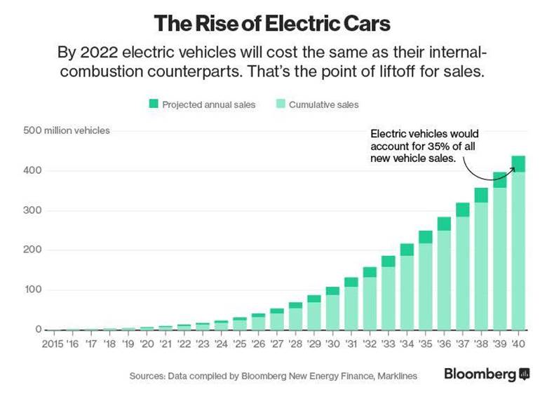 Volkswagen (OTCPK:VLKAY) is sure that a whopping 25% of its car sales by 2025 will be EVs, and the World Energy Council expects 1 in 6 cars sold in 2020 will be EVs. By 2022, according to Bloomberg, EVs will be cheaper than traditional vehicles.