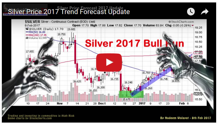 The Silver price hit bottom at $15.67 mid December 2016 following which it has entered an uptrend that has taken the precious metal to its recent trading high of $17.88, all this whilst apparently many silver bugs as well as gold bugs had publically thrown in the towel due to the failure of the precious metals to perform following Trumps election win which instead of igniting a rally had resulted in a 20% slump in the silver which ensured that most silver bugs would be too battered and bruised to partake in the subsequent rally.