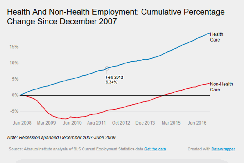 Health care is a huge industry that accounts for most of the nation’s post-recession job growth.