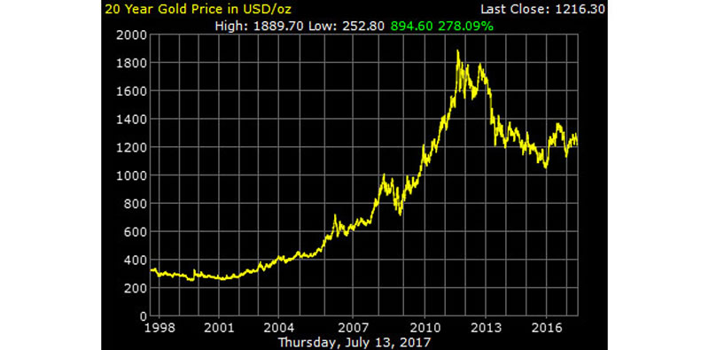 The bottom was set in 2015 when gold was hated and disregarded by investors—it was trading for $1,099.
