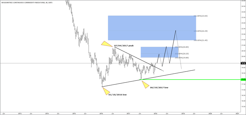 With that said I want to present to you another important instrument we follow. It is called the Wisdomtree Continuous Commodity Index (GCC).