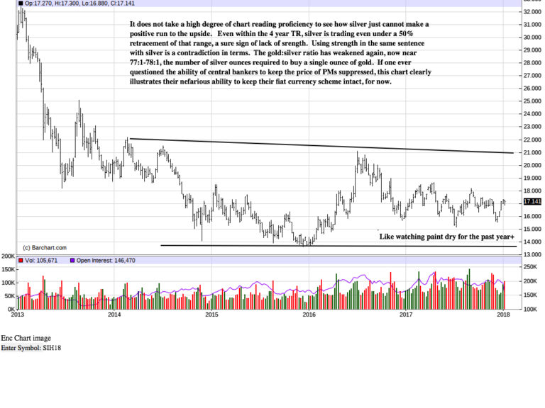Usually we have a commentary of some kind as a back story to what is going on in the PMs. Our commentaries have become fewer and farther between because of the absurdity of government control, which in turn is controlled by the ruling elite. Not a day goes by that the president elect, Donald Trump, is not severely criticized by mainstream media, both televised and in print. We have never seen this kind of maltreatment toward a president, ever. It is the Deep State exposing its ugly tentacles to keep Trump from gaining any traction in popularity, and it speaks to the bitter disappoint that Deep State favorite, and one upon whom they could depend, Hillary Clinton lost.
