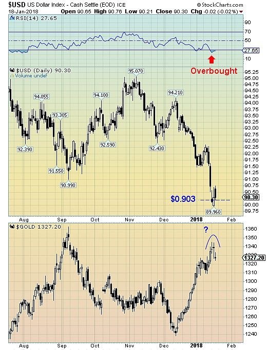 The current junctions of the U.S. dollar and gold, we believe, are key markers to watch over the next few weeks.