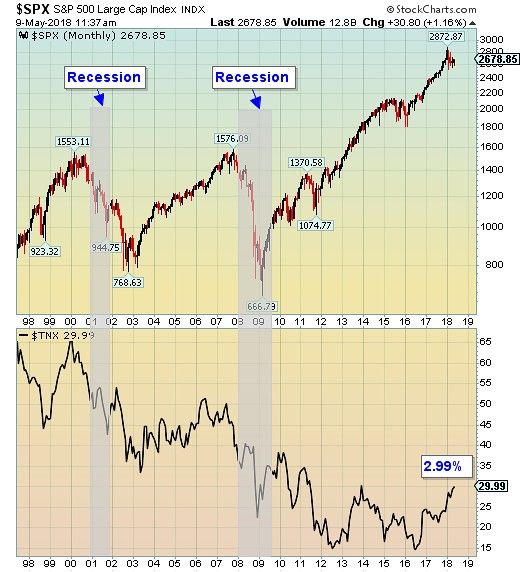 And in the course of the last two recessions, rates dropped sharply to try and invigorate a slumping economy and stock market.