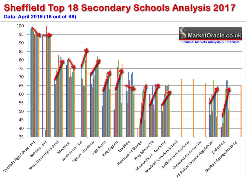 So in the countdown to the 31st October school applications deadline (18th Oct online), students and their parents will be scouring Sheffield secondary schools performance league tables in making their application choices. However, the league tables can from time to time prove highly misleading as many of Sheffield's 38 or so Secondary schools / Academies for whatever reasons tend to exhibit volatility in performance from year to year. Therefore a currently high ranking school may not mean that the same level of performance will continue in subsequent years as it may have been subject to special measures, therefore a better methodology in the ranking of schools is to evaluate performance in terms of trend.