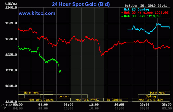 Chart 1: Gold prices from October 28 to October 30, 2018.