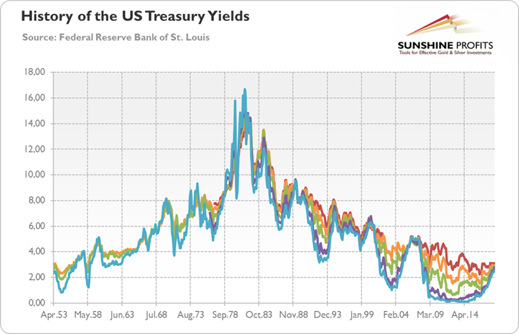 For some analysts, such high levels are not sustainable. However, when you adopt a broader perspective, you will see that the bond yields are not extremely high. As the chart below shows, their current levels are still historically low. The bond yields used to be much higher in the past – and not only in the 1970s, when inflation raised its ugly head, but even in the early years after the Great Recession.