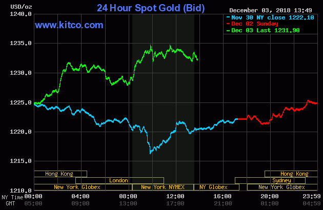 Chart 1: Gold prices from November 30 to December 3, 2018.