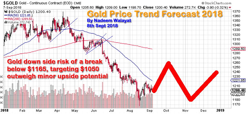 My forecast conclusion as of early September was to expect the following trend for the Gold Price for the remainder of 2018