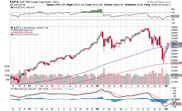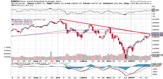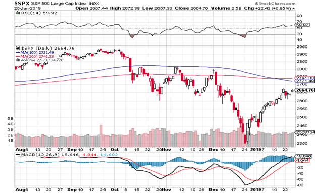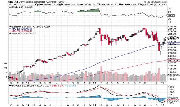 There are a number of major factors waging on sentiment. Chinese trade talks, Brexit, the effect of the American Government shut down on GDP and the possible relaxation of Quantitative Tightening by the FED. Given that the American economy is strong, if the above are all resolved favourably, then it is quite possible new highs can be reached in 2019