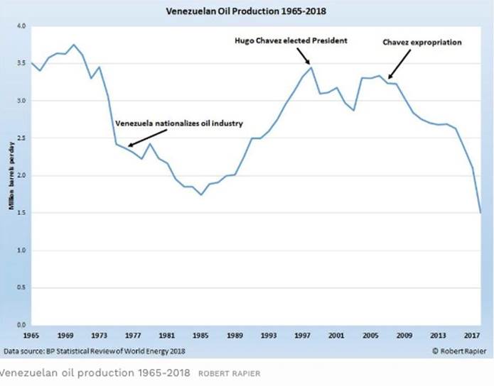 The flight of foreign oil companies and technology, along with the Chavez government’s failure to appreciate the level of capital expenditures required, meant that Orinoco’s output declined.