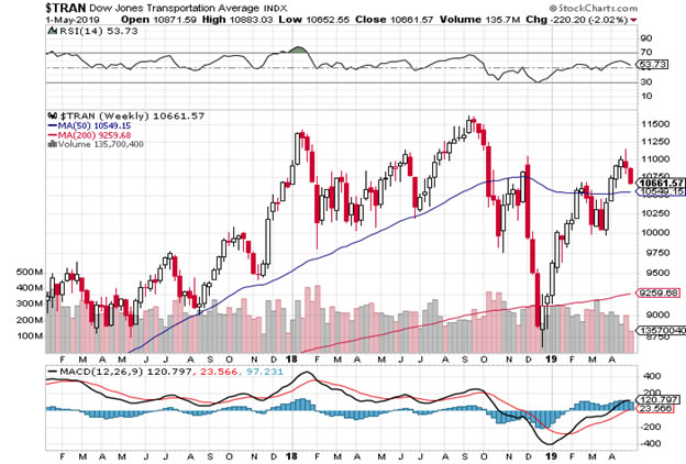 Divergence is developing between the Dow Industrials and the Dow Transports. In addition while the S & P 500 and The NASDAQ have reached previous highs the main Dow Indices have not. Thus there is above average investment risk about. It is also important to keep in mind that while there has been significant rallies following the 2018 winter pull back, since last October the S & P 500 is down .57% (approx half of one per cent), the NASDAQ is up only 1.06% and the Dow 30 has suffered a loss of 1.93%.
