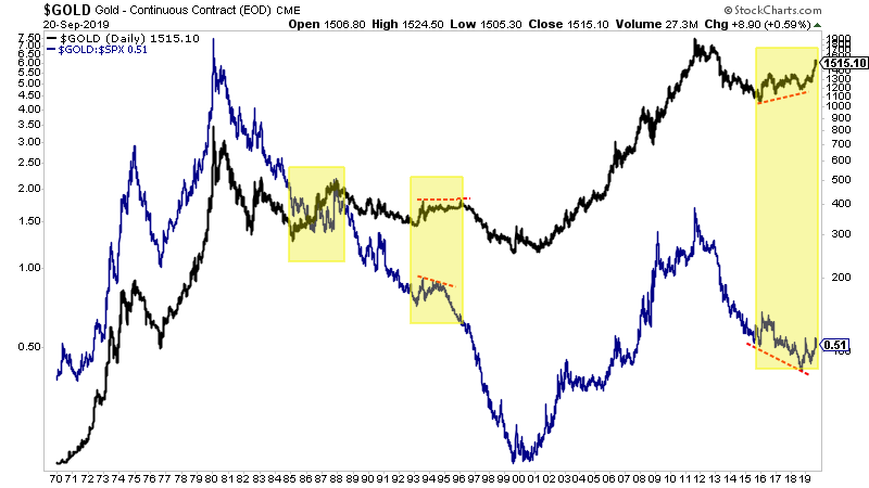 Simply put, other than from 1985-1987, Gold has never been in a real bull market without outperforming the S&P 500.
