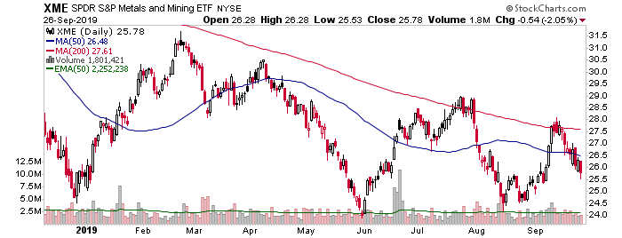 The Metals & Mining ETF was one of only two vehicles I used to trade the bounce, somehow managing to fortuitously sell right at the SMA 200. But was it actually fortuitous or was it just a market participant thinking “profit in hand but an existing downtrend… take the damn profit!”? Oh yes, it was that second thing.