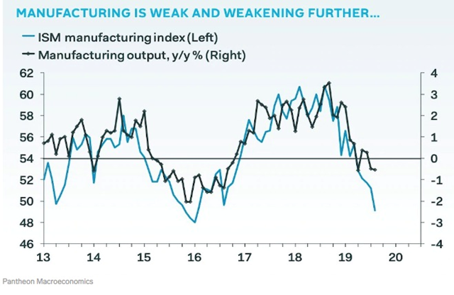 Capital Economics reports that growth in China’s industrial production kept falling to just 4.4% in August, a 17-and-a-half-year low. The country’s manufacturing Purchasing Managers’ Index (PMI) also worsened, slumping to 49.5%. Any number under 50 represents an economic contraction.