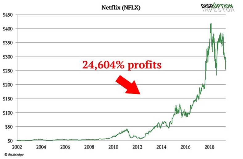 If you invested in Netflix back in 2002, today you would be sitting on 24,604% gains.