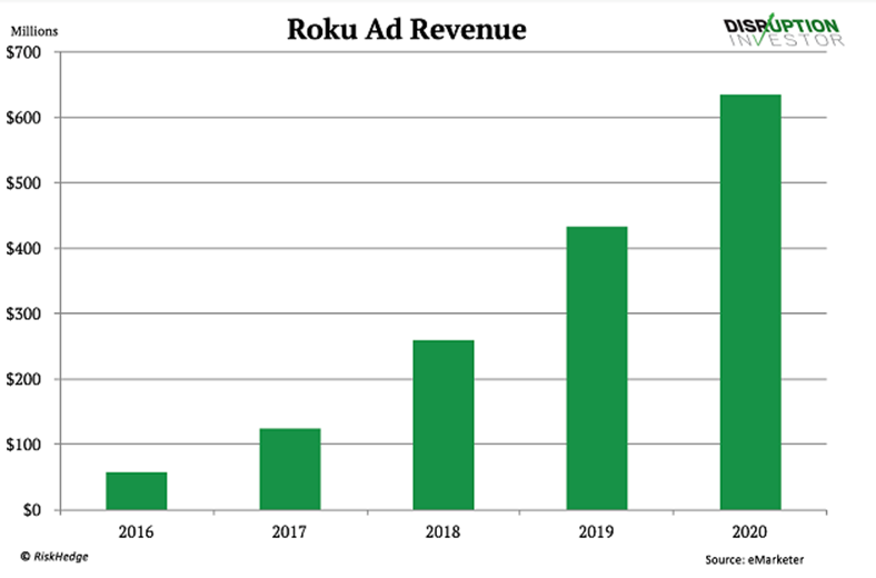 Roku’s advertising revenue is rocketing, as you can see below: