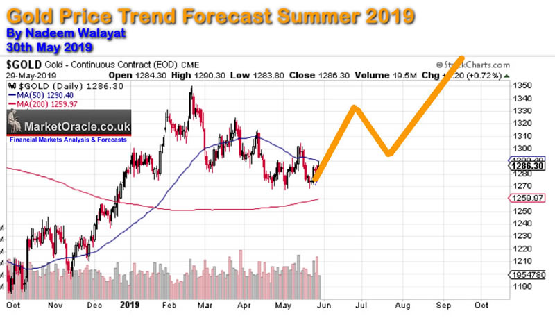 My analysis of 30th May just prior to the Gold price taking off like a rocket (Gold Price Trend Forecast Summer 2019) concluded in bullish expectations for the summer trend to see the Gold price target a series of resistance levels all the way to $1400.
