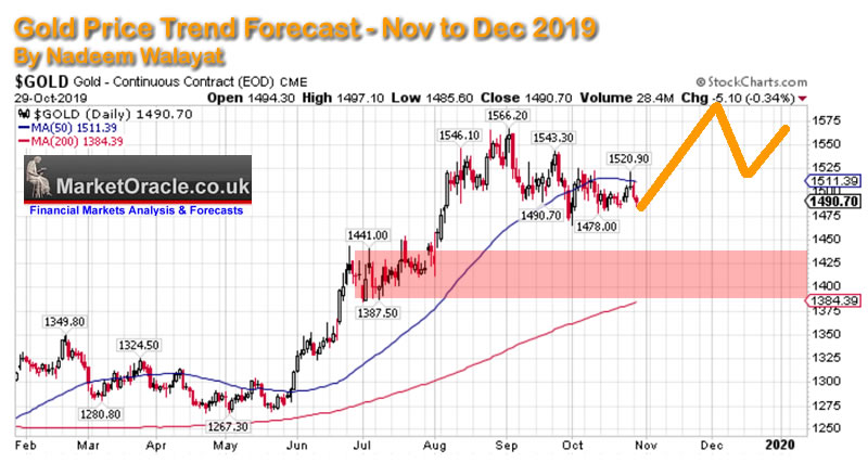 And my third and final Gold analysis of the year of 30th October was banking on an imminent end to the Gold price consolidation and thus for the bull market to resume to soon target a break of of the September $1566 high before taking a breather into the end of the year to target a year end close of about $1560, that actually materialised just a few days later during the start of January 2020.