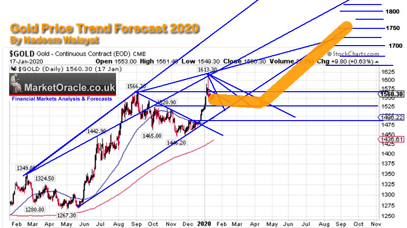 My last look at the Gold price was in Mid January (Gold Price Trend Forecast 2020) that concluded in mild first few months of the year to give way to a strong Bull run from Mid April to target a trend towards $1800.