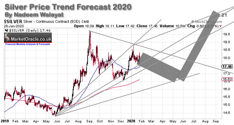All things considered, and given that on 29th of Jan no one could have imagined our governments would be incompetent and negligent to the extent they have been in response to the Coronavirus then the forecast has managed to prove remarkably accurate given that the forecast was for SIlver to be currently trading at about $17.4 against actual last close of $18.4. Namely for the expectation for Silver price weakness into Mid 2020 ahead of an attempt at a break above $20 later in the year, set against the perma silver bugs who have seen every up day as the start of the silver gold rush towards $50 and beyond.