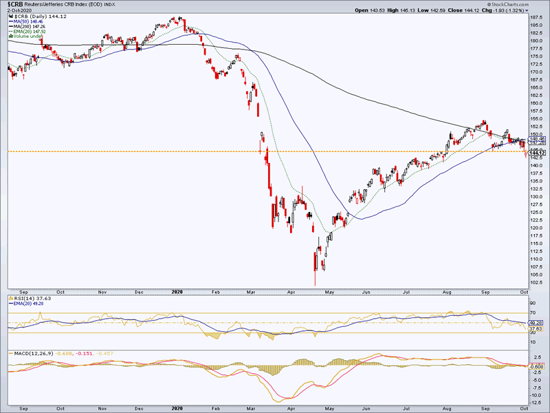 Over in the commodity patch, the daily CRB index looks disgusting as it fails the moving averages after grinding them for the last several weeks. The chart speaks for itself. You don’t need me to add words.