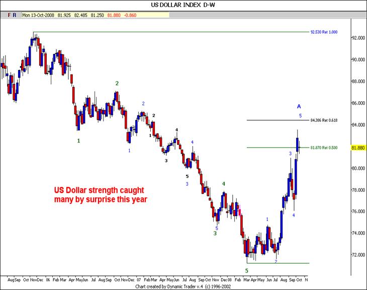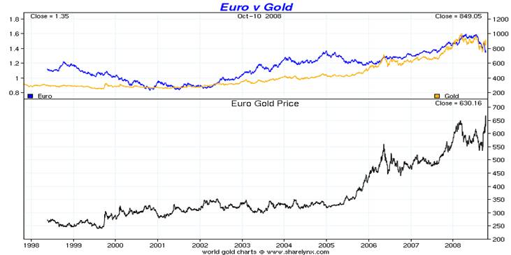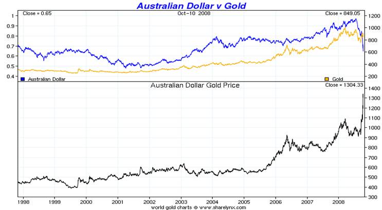 Certain subscribers from Australia and Canada have been writing in during the year saying that they had bought gold when it was at $x, gold had gone up, and yet their investment had not. Well, with the exception of US citizens, gold is in a roaring bull market because of the exceptional strength of the US Dollar since March of this year. Far from topping out in March, gold in other countries is still reaching new highs. This strength caught most investors out, and particularly a number of hedge funds which have had to liquidate because of losses incurred through being short of the dollar and long commodities.