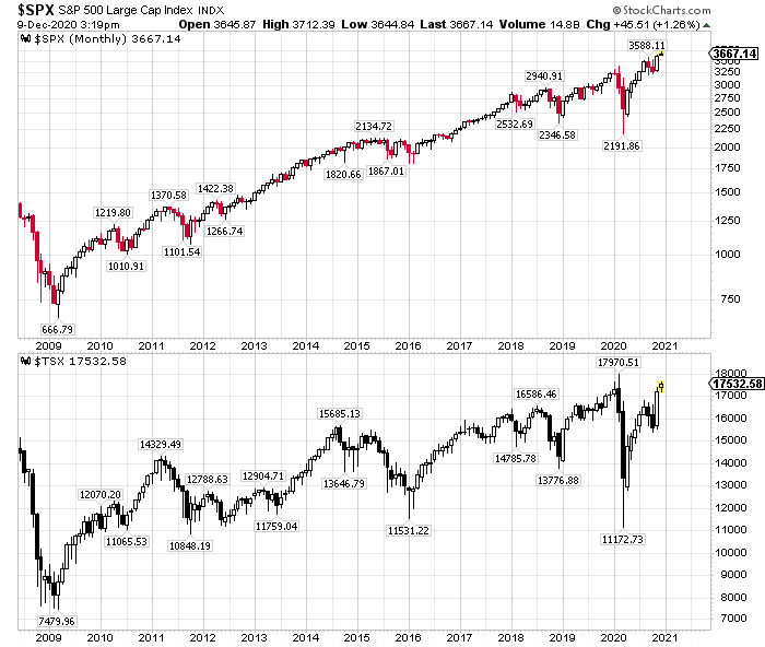 in Q4 and bullish trends hold (Chart 1). The S&P 500 recently posted a new all-time high of 3588.11 and the TSX is retested an all-time high near 18,000.