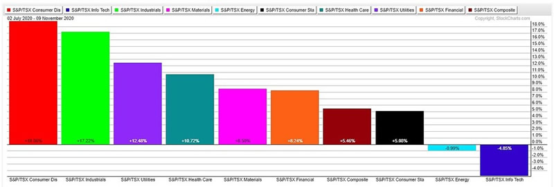 Canada's TSX developed the same pattern as the S&P 500. The Materials sector began to outperform the TSX in Q3 (Chart 3).