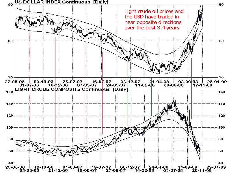 Bottom line: The expected global contraction plus stable technical strength for the greenback indicates a continuation of the downtrend in oil prices into late 2009.