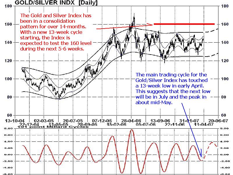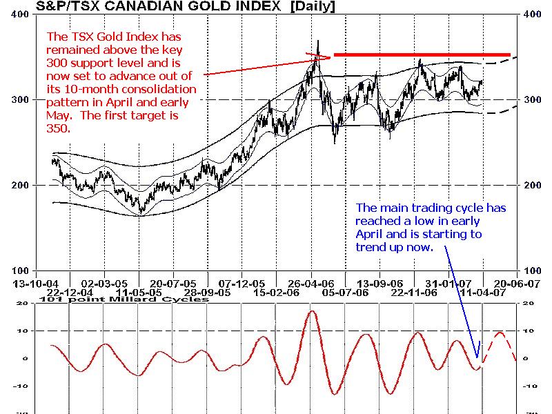 MY CONCLUSION: After months of consolidation, the precious metal sectors will be testing their upper ranges in late April and May. This move appears to be part of a larger change of trend from flat to up. Further improvement in prices and additional time will be required before a true breakout to new highs develops, but technical evidence is mounting to signify that the second half of 2007 will provide greater performance.