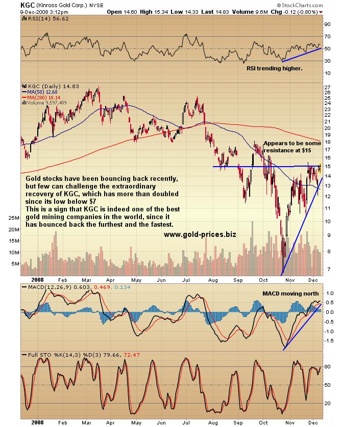 Gold Stocks have been bouncing back recently, but few can challenge the extraordinary recovery of KGC, which has more than doubled since its low below $7.