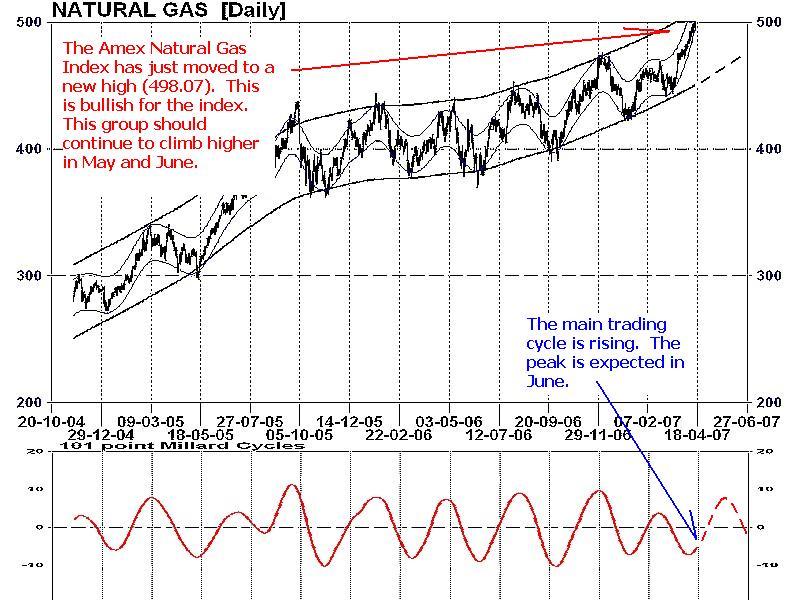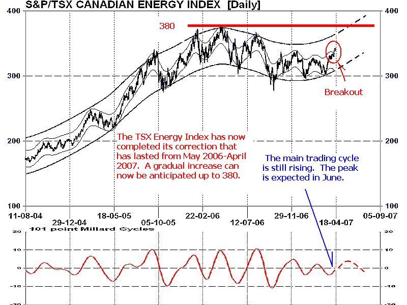 MY CONCLUSION: As energy sectors usually lead the commodities, the present strength in the Amex Oil and Natural Gas Indexes along with returning vitality of the TSX Energy Index points to gradually improving energy markets in 2007. Historically, the second half of each year offers improved performance for the energy sectors over the first half. Summer driving and air conditioning power demands, expectations of winter heating and the probability of supply disruptions from hurricanes normally all contribute to a higher energy prices over the next six months.