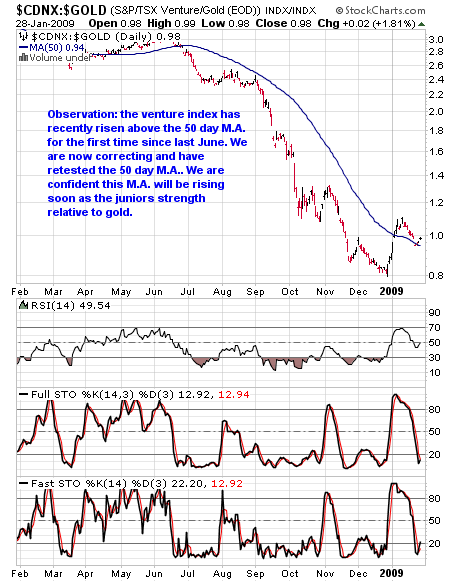 Recent market action has favored gold and silver but the juniors are still greatly lagging in price. This miserable looking chart with soon look much different as the junior start to out pace gold in the weeks and months ahead.